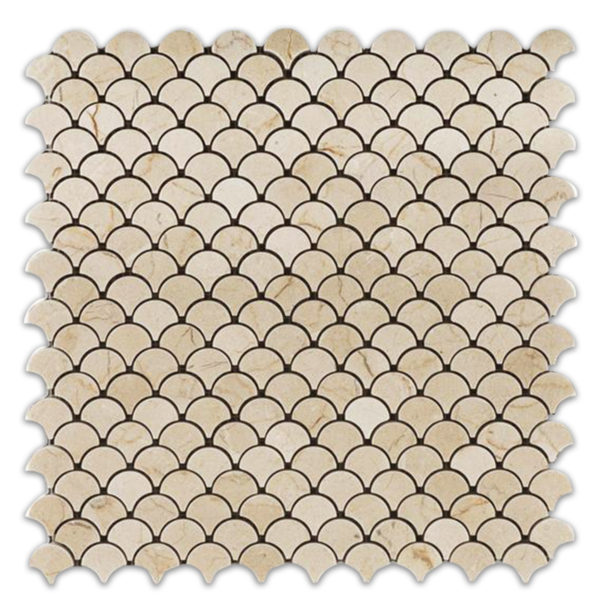 Crema Marfil Fan (Fish Scale) Mosaic