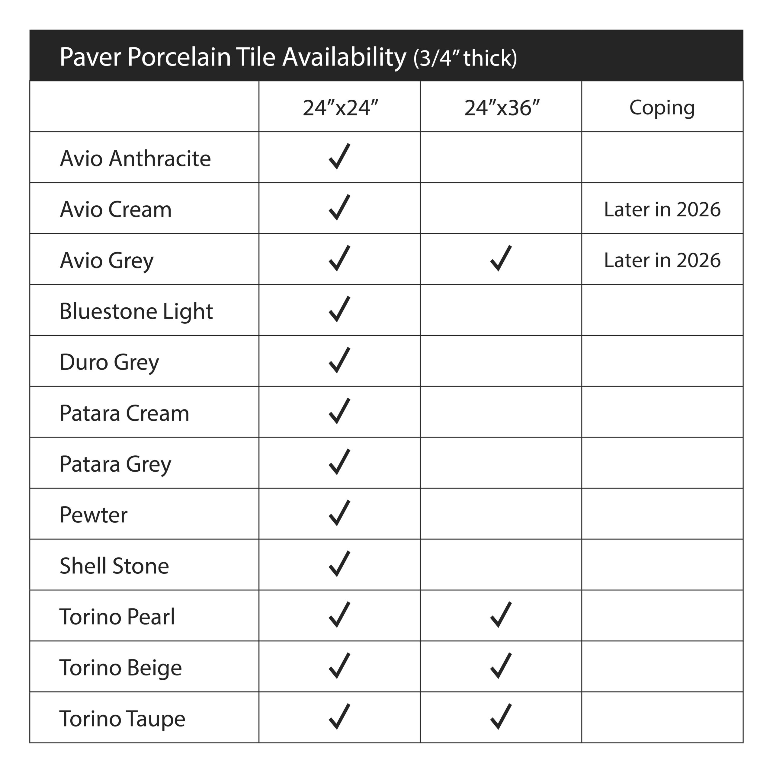 PORCELAIN PAVERS (3/4” THICK) TECHNICAL DATA :